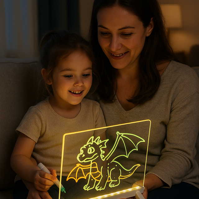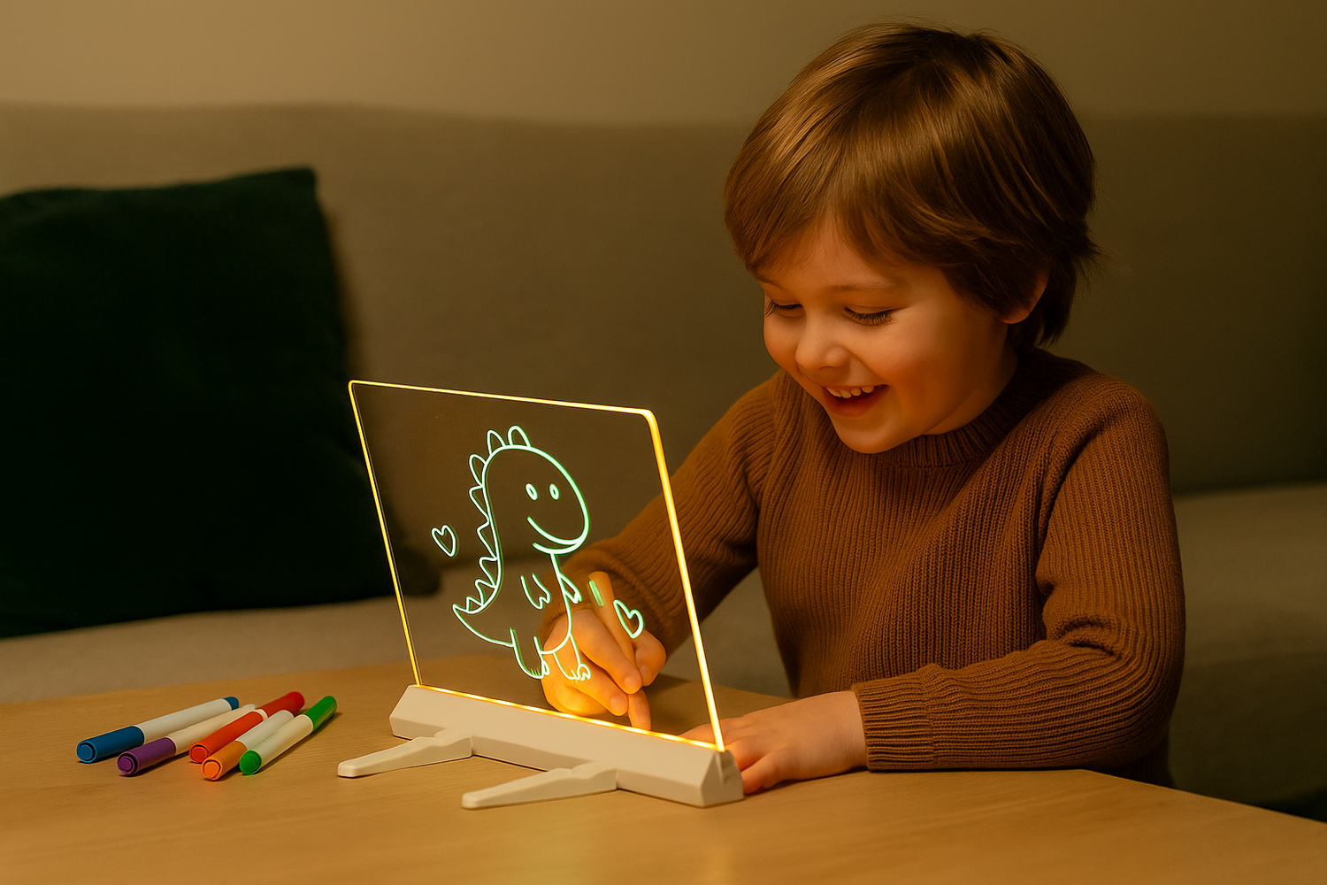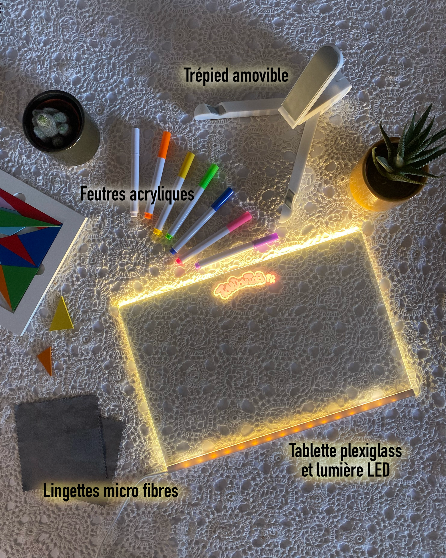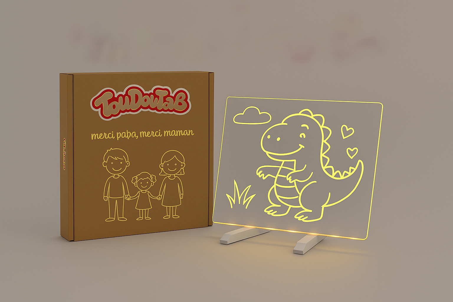Offrez une alternative saine et magique : un tableau lumineux réutilisable qui encourage l’autonomie et la créativité, sans lumière bleue et sans écran. Un geste, on efface. Et on recommence ✨
